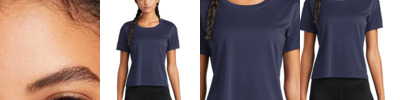 With an on-trend cropped fit and all-over open-mesh fabric, this draft crop tee has PosiCharge technology to lock in color.